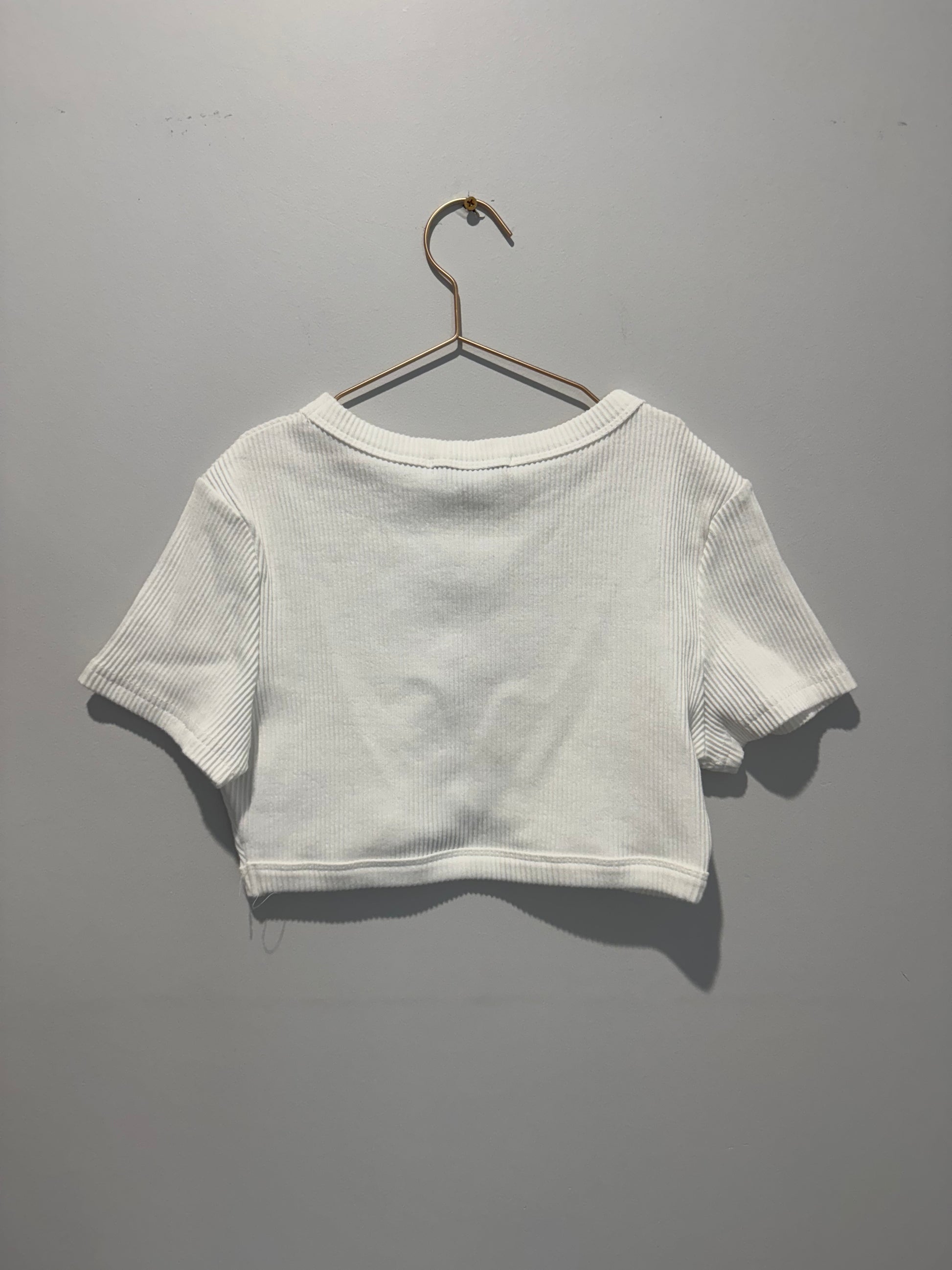 A go - to essential for surfy summer vibes. This white ribbed crop top is soft, stretchy, and pairs perfectly with denim. Made with comfort and style in mind, it features a flattering crew neckline. Whether layered or worn solo, it’s the kind of top that goes with everything.