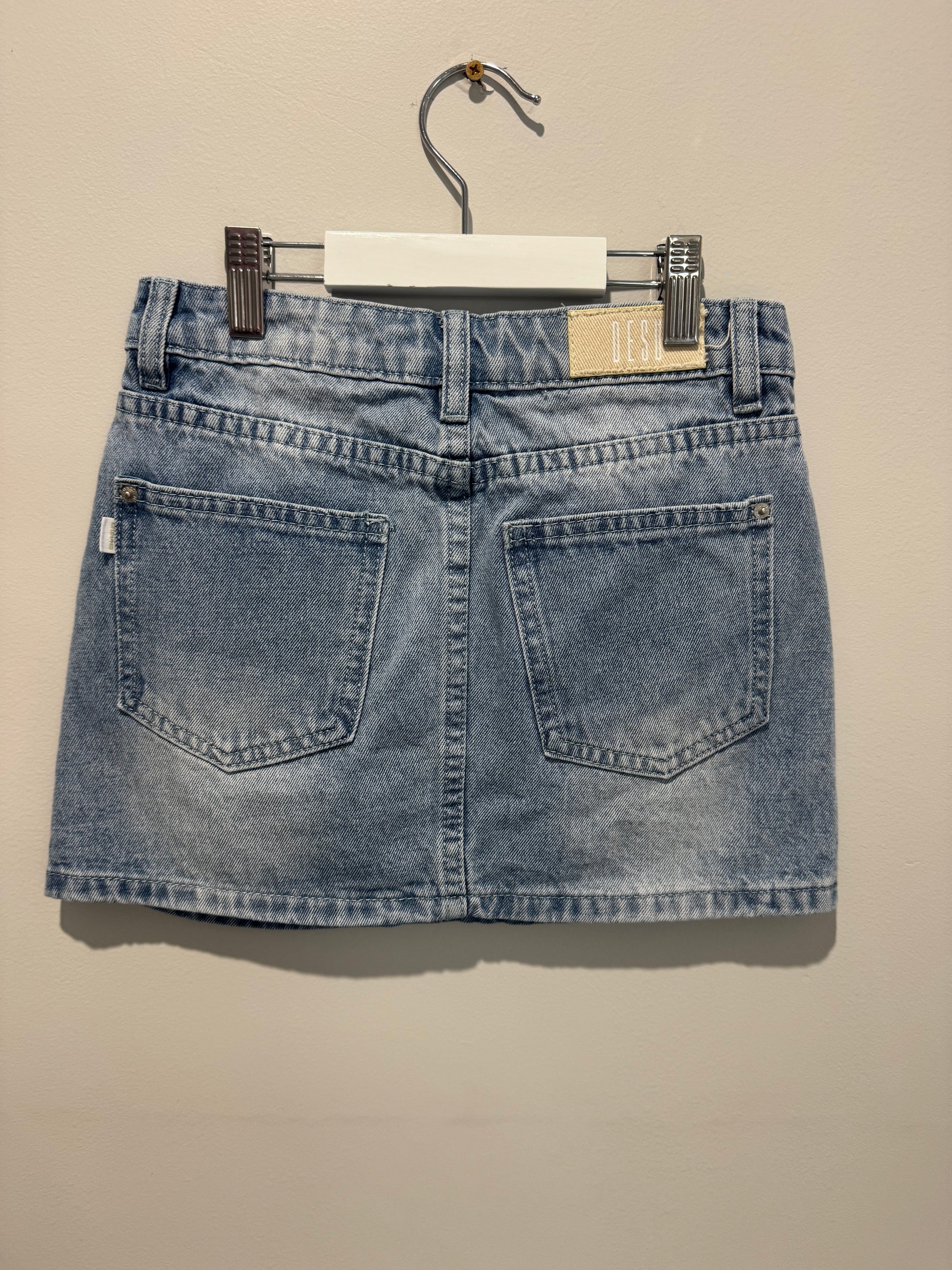 A classic staple with a surfy, laid-back vibe. This light-wash denim mini skirt from DESU is made from 100% cotton. Features include functional front and back pockets, belt loops, and a sturdy zip/button closure. Easy to pair with a tee, tank, or crop for effortless everyday style.