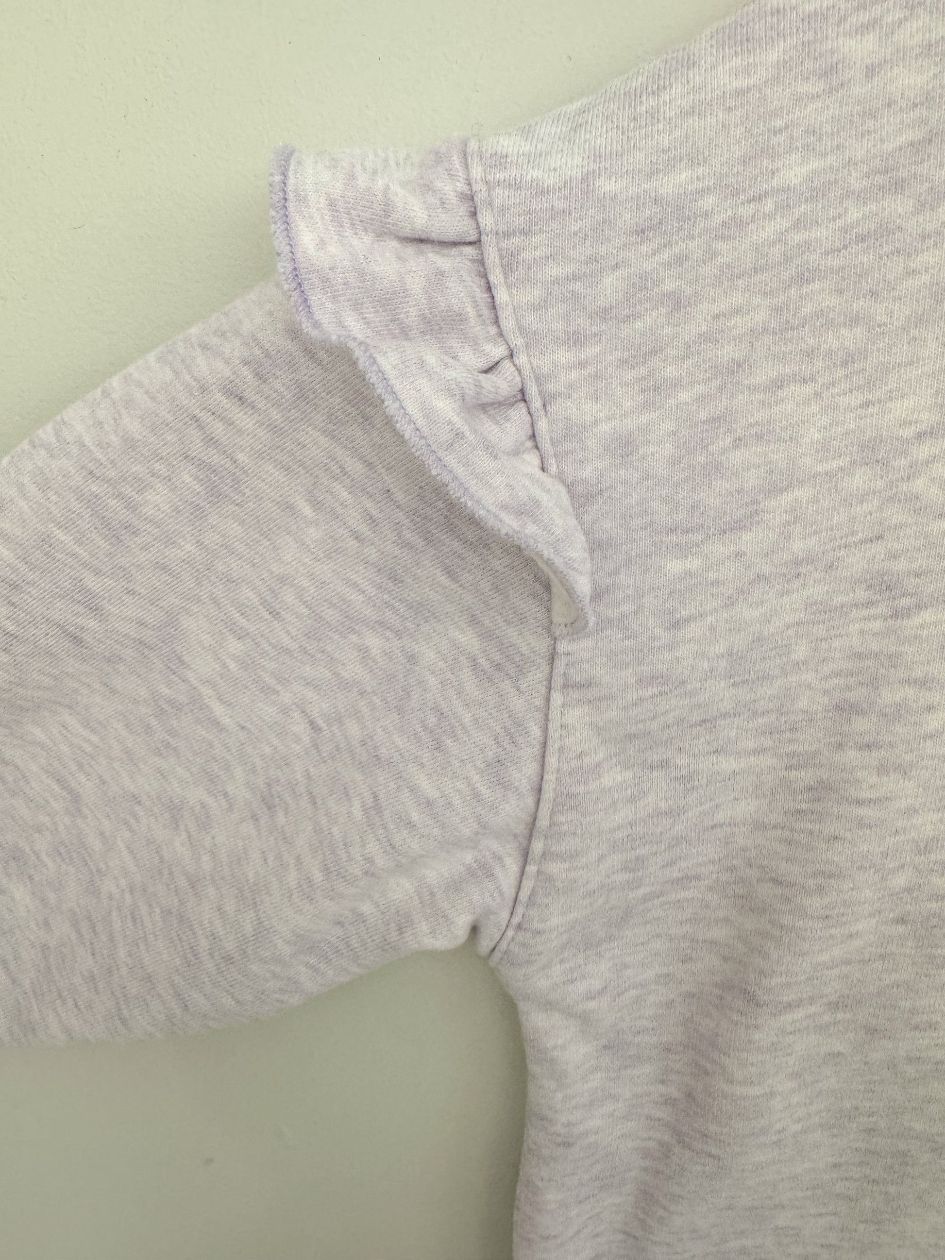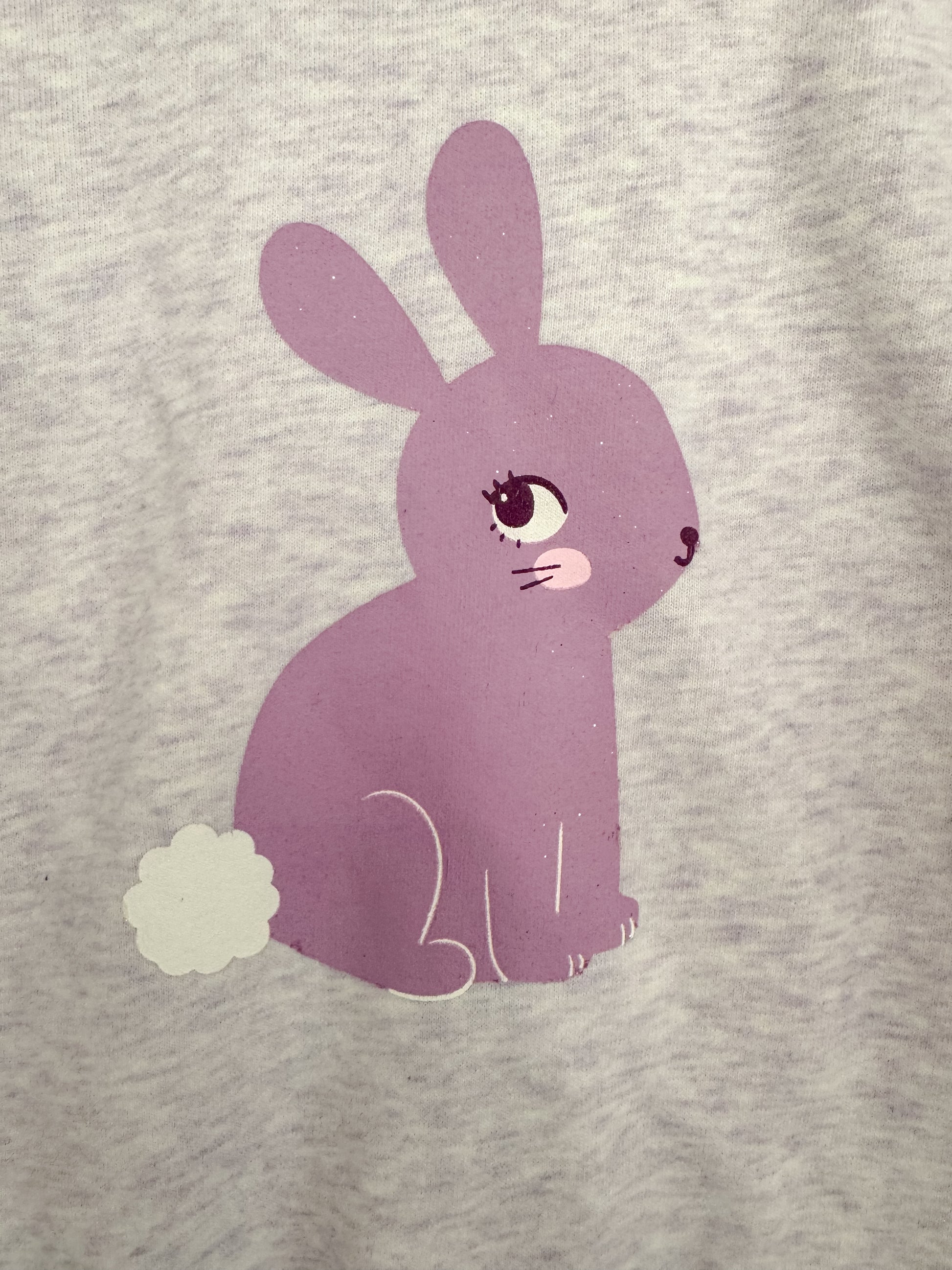 This soft lilac Milkshake sweatshirt features a sweet purple bunny print on the front, complete with a fluffy white tail and subtle sparkles for a touch of magic. Made from cozy fleece-backed fabric, it includes adorable frill detailing on the shoulders and ribbed cuffs for a snug fit. Perfect for cooler days and bunny-loving little ones!