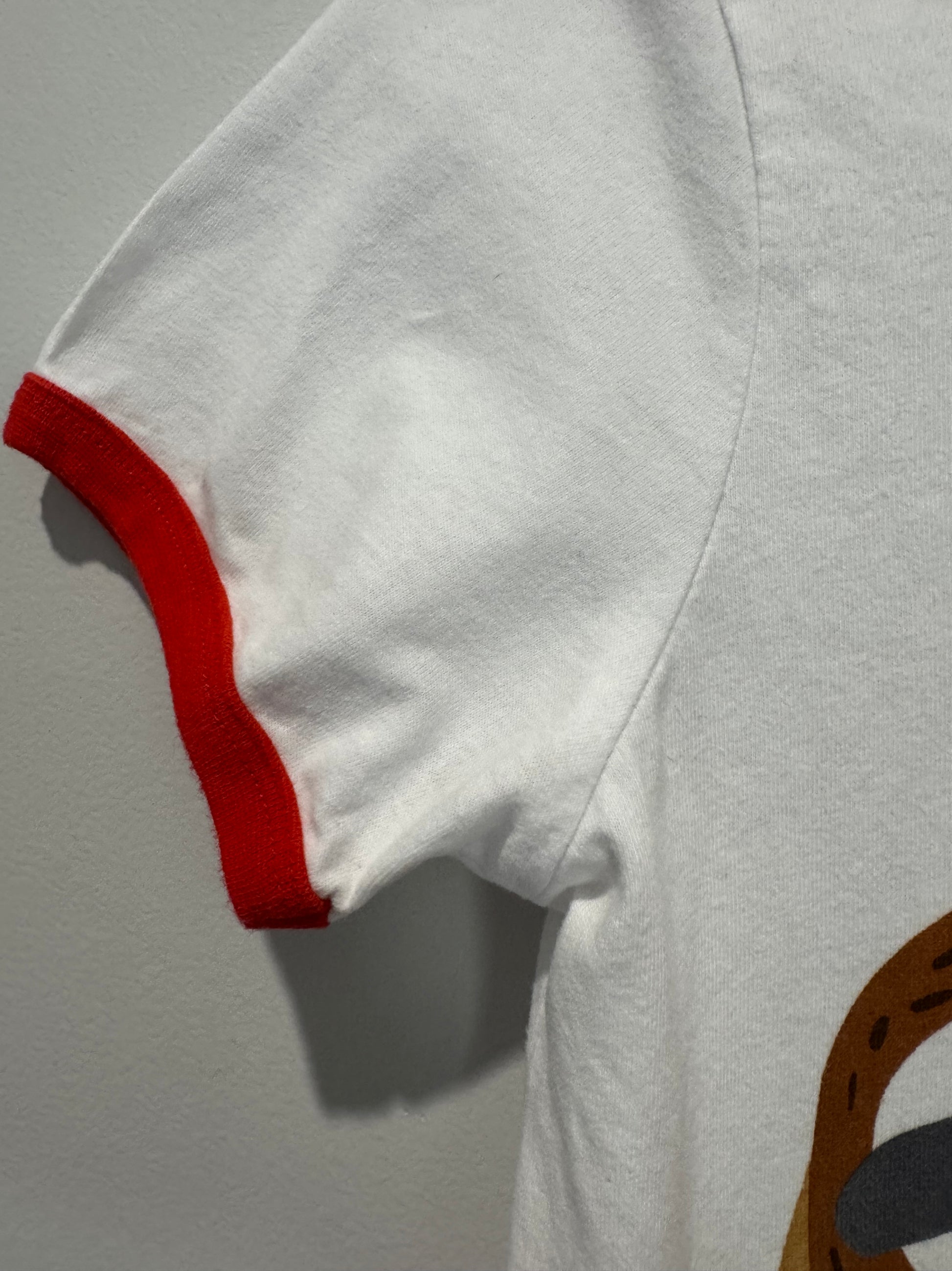 Add a playful twist to your wardrobe with this adorable Peter Alexander sloth tee! Made from soft, breathable cotton, this comfy white t-shirt features vibrant red trim on the neckline and sleeves, and a charming sloth graphic hugging a bold red heart. A sweet and fun piece perfect for lounging, sleepwear, or casual everyday style. Finished with the iconic Peter Alexander sausage dog logo near the hem.